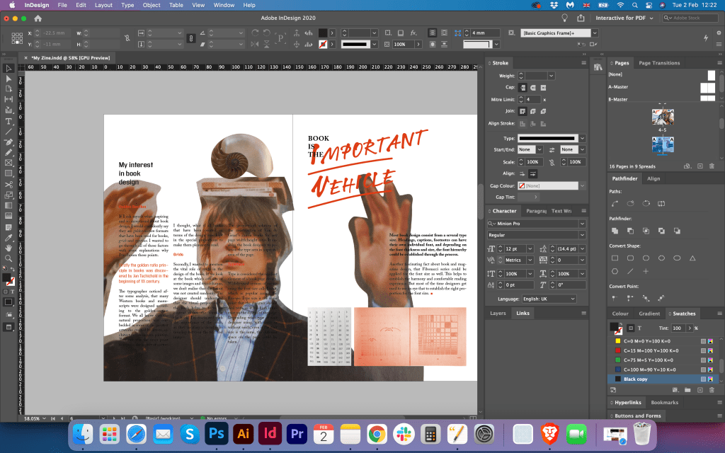 ● Your creative process – how do you like to work creatively, what sort of process do you follow to research and generate ideas, and what are your preferred mediums to work in. Say something about you as a creative practitioner and your approach. Show your approach to book design through your design decisions and the hands-on sense of immediacy and energy that is an attribute of fanzine design.