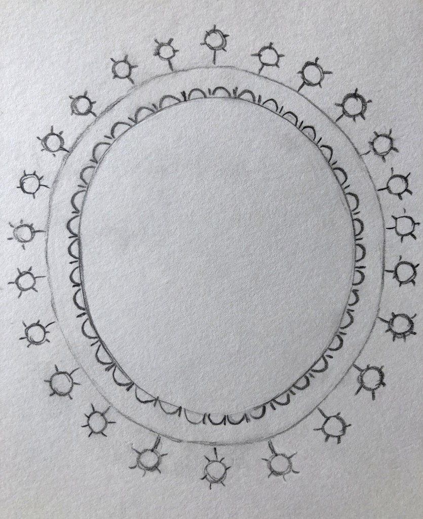 Some objects I traced in Adobe Illustrator are presented below. They all were designed with simple Pen Tool, and Arrows to navigate them. The round frame was a bit tricky, and I had to watch a quick tutorial, that to remind myself how to make a pattern out of the outline, that to organise them into the round shape.