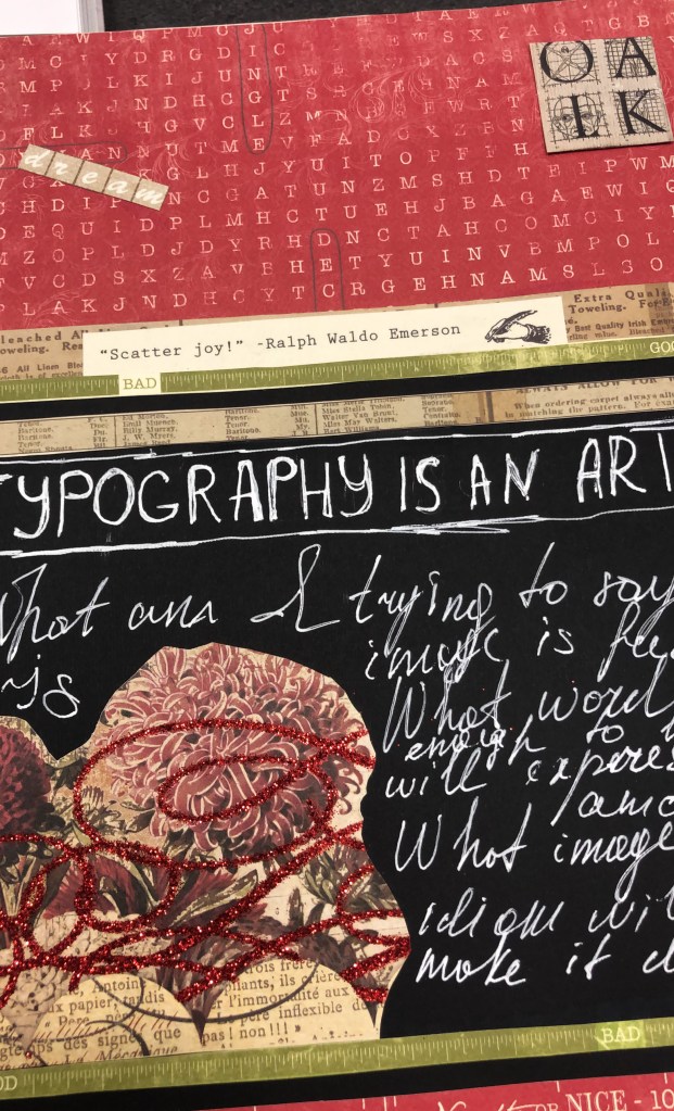 As with previous assignments, see this as an opportunity to undertake a creative project that is more circular in nature than linear. Visualise initial ideas, assess them and return to your starting point to develop new starting points. Be experimental with your typography and take creative risks along the way. Focus on how you can visually document your creative journey as well as your reflections on what you are producing. Your notes should cover why you decided to portray what you did, what you included and what you omitted. Reflect on how do you feel about the two completed books. For example, are there comparisons you can make between them, has any interesting design issues emerged through the process of making them?