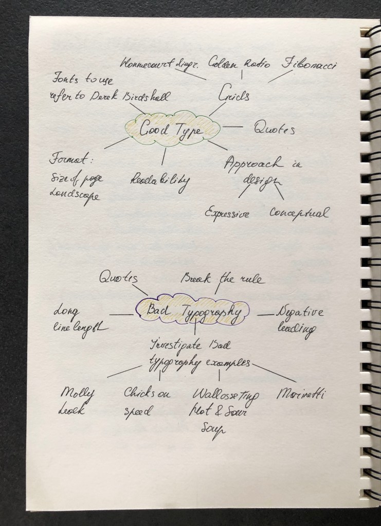 I created a mind map of final parts that I was going to include into my booklet. Those were going to be for the Good Typography: