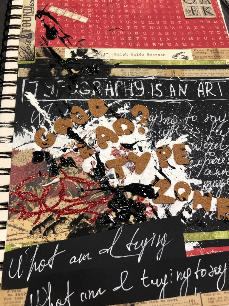 After some researches, I went to the next level of some experiments with typography around me. I had some examples of craft around, so I wanted to try some cut and paste approaches, similar to fanzines. These could be examples of experimental typography. In addition, I made my own writings with a white pen on the chalk board. At this point, I was not confident about what exactly I’m looking for but it was worth seeing whether those typography examples are going to work.