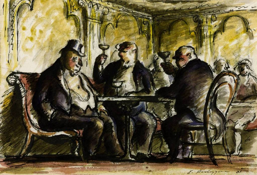 I loved these artists’ works in particular, as they are a great combination of soft watercolour shades and sharp pencil/pen sketches on the top, to highlight the line. His first works were predominately dark and dulled coloured, but towards the ’70s I could see the movement towards bright and clear watercolours.