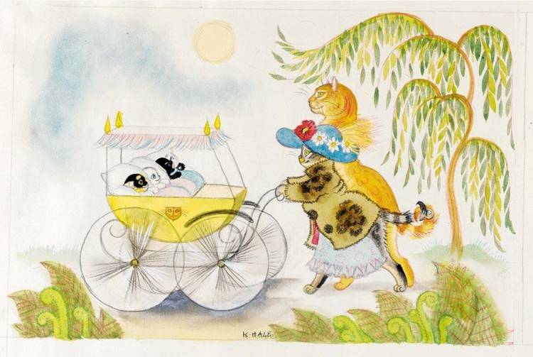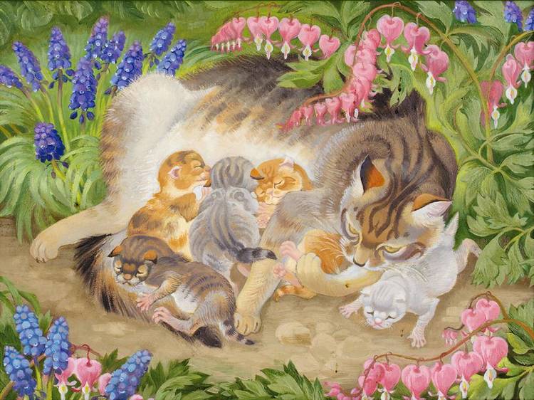 Kathleen Hales’s works are filled with tenderness and love for nature, especially admiration toward cats. She depicted them beautifully and softly. These are perfect illustrations for the kid’s stories and fairytales, the colours are delicate and aesthetically pleasing to the eye, and they have that distinctive vibe from the past century.
