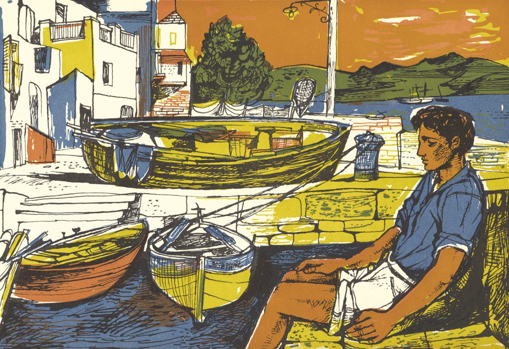 John Minton was part of a group of British Neo-Romantic artists. He is perhaps best remembered as the illustrator of Elizabeth David’s revolutionary cookery books on French and Mediterranean cuisine.