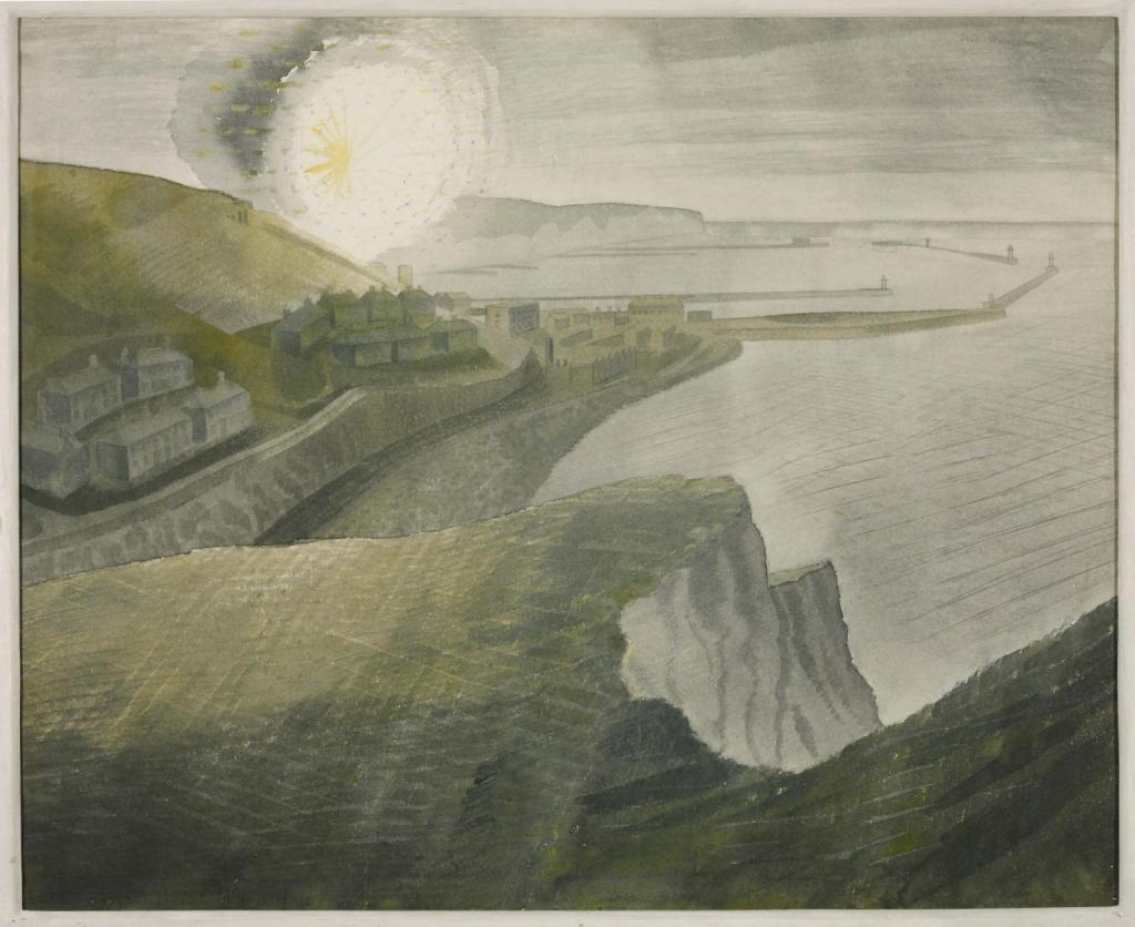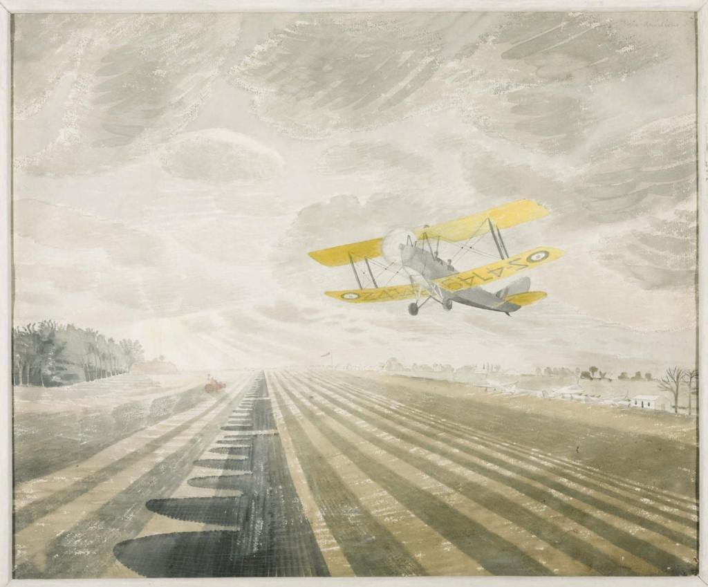 Eric Ravilious was a British painter, designer, book illustrator and wood-engraver. He grew up in Sussex and is particularly known for his watercolours of the South Downs and other English landscapes. In his works, the artist examines English landscape and vernacular art with an off-kilter, modernist sensibility and clarity. He served as a war artist and died when the aircraft he was in was lost off Iceland.