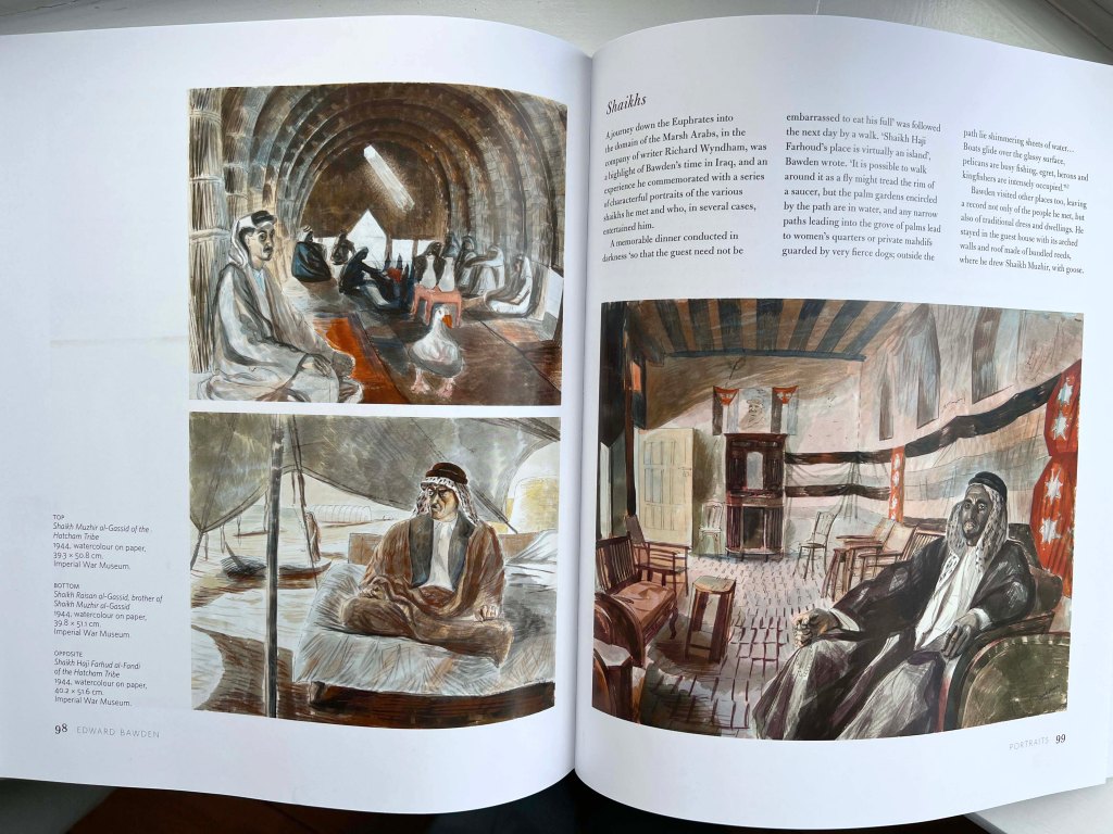 For my sketches, I got inspired by two artists. Edward Bawden’s motives of the Middle East gave me the idea to depict some sceneries from Uzbekistan, the country where I was born and spent the first years of my childhood. I loved the old traditions of watercolour techniques the artist used in his works, with dull shades, mainly sand colours and natural sceneries. Below is presented Edward Bawden’s book with portraits of Shaikhs. That gave me the idea of picturesque traditional people from Uzbekistan, with cultural background and Asia motives. I wanted to show the mood of the painting through colours and details around the central figure.