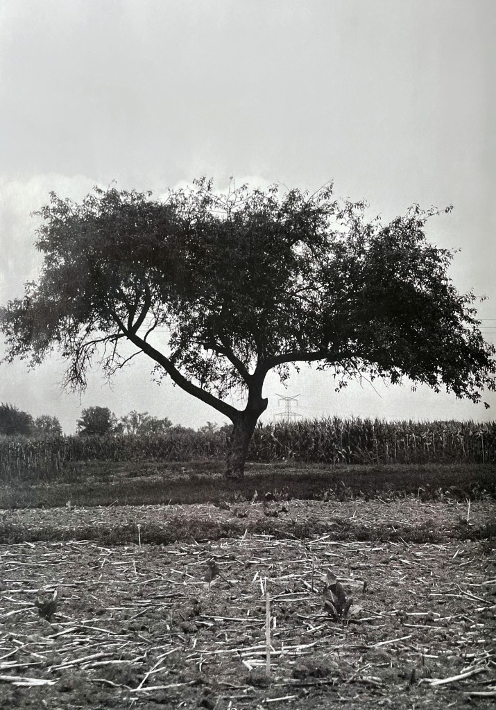 The boy looks down like did I forget something there? He is going to the top, to reach his target, which is the tree, but he keeps on looking backwards. The composition goes to the top, like pointing an arrow from the ground to the sky, with the main things happening closer to the top.