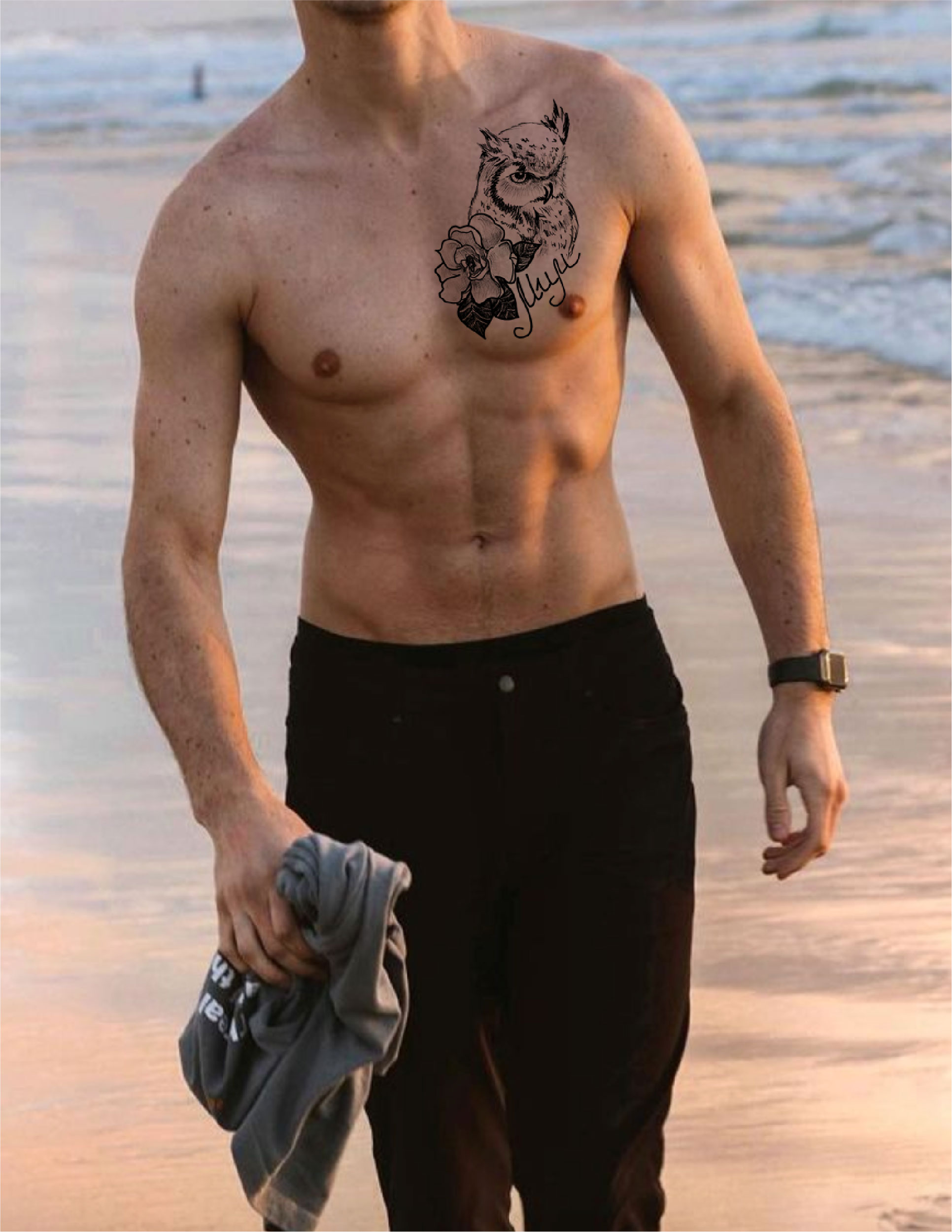 When I thought of the style of the tattoo, I could characterise it as traditional, also known as Old School. Traditional tattoos originated in the early 20th century and are characterised by bold, thick black outlines, a limited colour palette, and simple, iconic designs like anchors, roses, and swallows. In my case, it was going to be a rose and an owl.