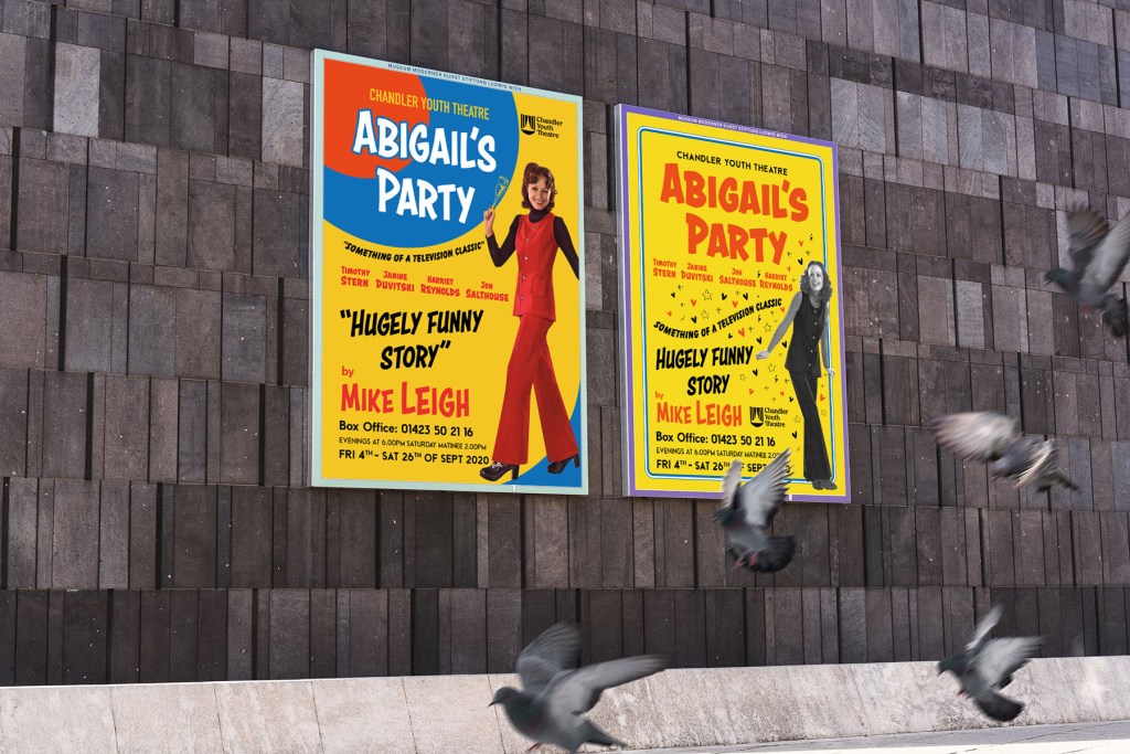 A youth theatre club is performing a production of Abigail’s Party. Mike Leigh’s tale of suburban taste is set in the 1970s and explores middle class aspirations and preoccupations. You will need to acquaint yourself with the play if you don’t know it already, as they are particularly keen for it to have a 70s feel. The play will be touring local theatres for a month, performing every Friday night and Saturday matinee. Produce a poster (A3 portrait), a flyer (A5 landscape, double-sided) and newspaper advert (A6) to promote this event. In addition they would like their A5 programme cover to continue the design theme. For the purposes of this brief you need to invent dates, times, places, names and any other information you think will be required. Use Lorum Ipsum text for areas of body text.